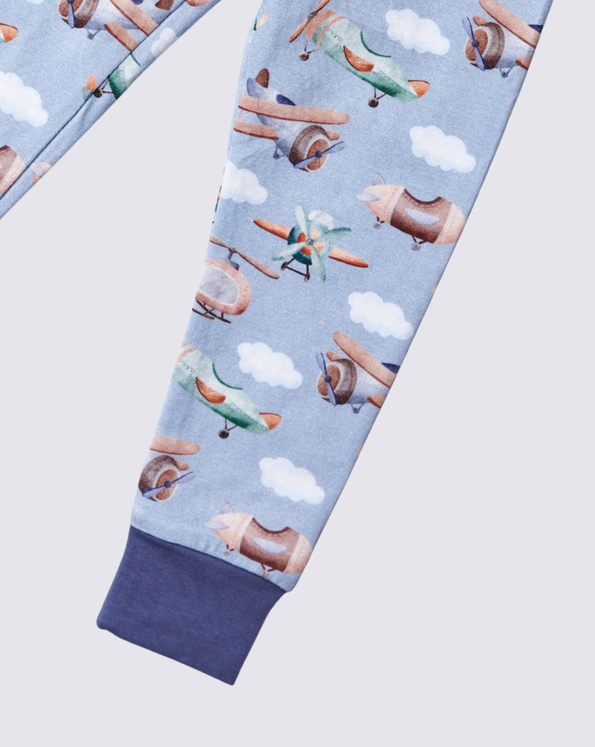 Let little dreamers take flight with the Airplane Crew pajama set! Designed for comfort and imagination, these soft pajamas feature a charming airplane theme that sparks bedtime adventures. Made from cloud-soft organic cotton, they're gentle on delicate skin and perfect for cozy nights and playful mornings. Available in sizes 1–5 years, this set keeps your little one comfortable from takeoff to landing.