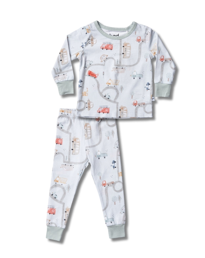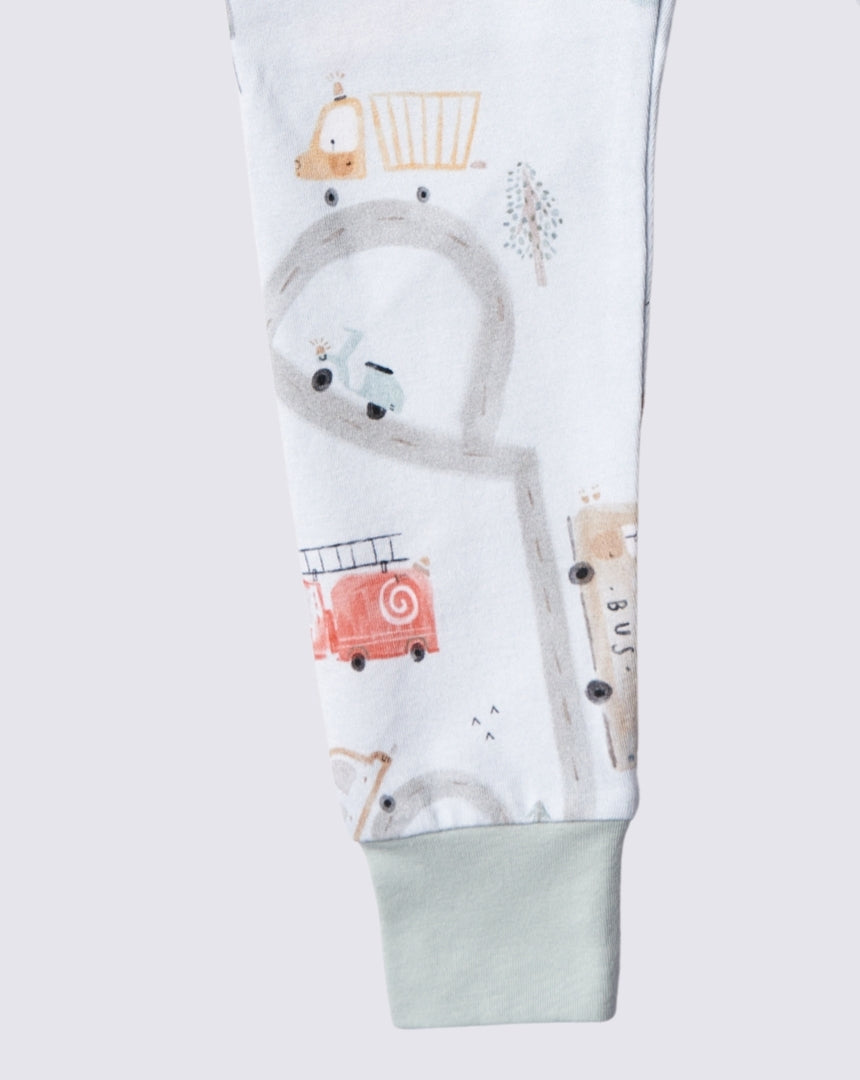 Little Wheels pajama set brings bedtime joy with its charming cars and roads design. Crafted from soft, breathable organic cotton, this cozy set keeps your little one comfortable all night long. The stretchy fabric moves with active toddlers, making it ideal for sleep and playtime alike. Gentle colors and playful prints spark imagination, while the quality construction ensures durability through countless washes. Perfect for ages 1–5 years, it's the pajama set that makes getting ready for bed an adventure.