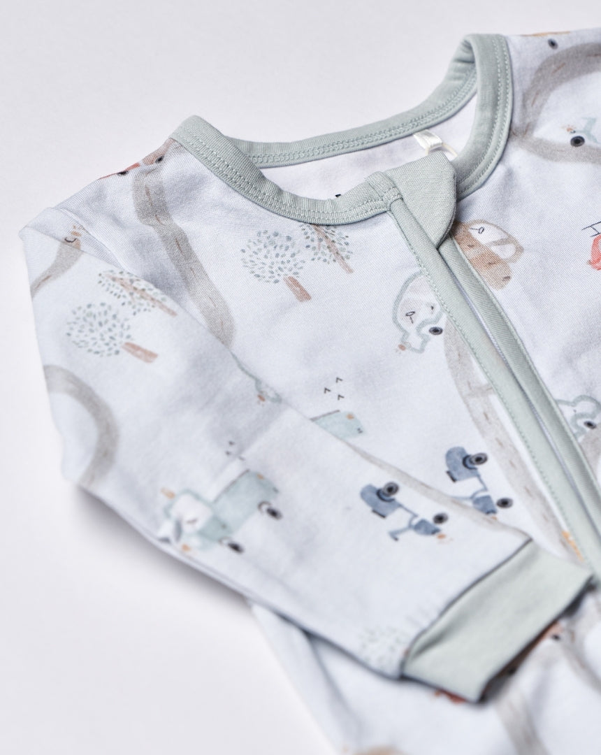 Little Wheels Footless (6-18M) Watch your little explorer zoom through playtime in these adorable footless pajamas! Designed with active babies in mind, this style gives tiny toes the freedom to crawl, kick, and move without restriction. Soft, breathable fabric keeps your little one cozy all night long, while charming cars and road illustrations add a playful vibe. Perfect for daytime naps or bedtime adventures, these pajamas grow with your baby from 6 to 18 months. Let the fun roll on!