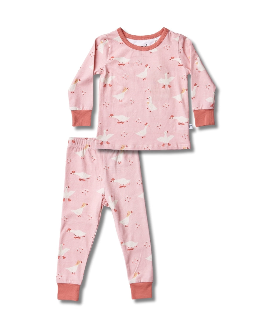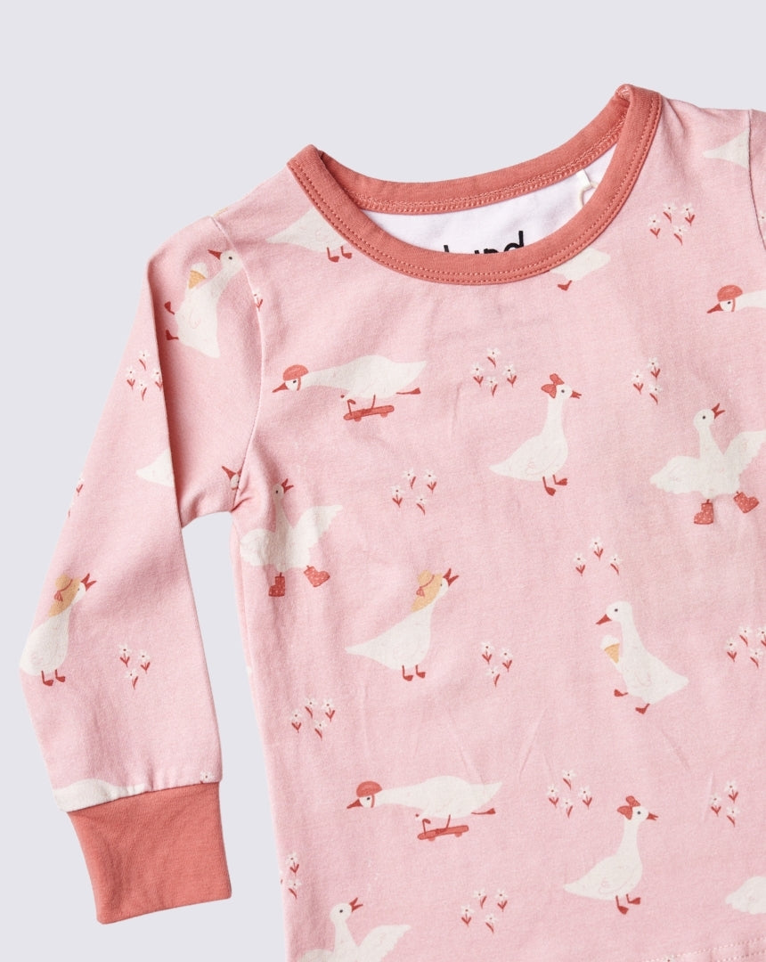 Introducing the Silly Goose—where whimsical waterfowl meet cozy bedtime bliss! Featuring soft blush tones and adorable duck designs, this playful pajama set transforms sleep time into an adventure. Crafted from breathable, gentle cotton, it keeps little ones comfortable all night long without any fuss. Perfect for toddlers aged 1–5 years, these pajamas are as fun to wear as they are practical. Sweet dreams guaranteed!